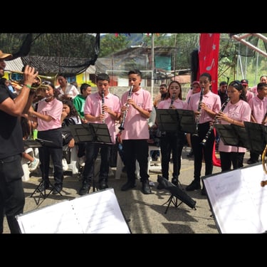 De igual manera, expresamos un especial agradecimiento al rector Norberto Ramírez por su valiosa gestión y apoyo constante; al tutor del Programa Todos a Aprender (PTA), Marcos Rubio, quien con entusiasmo se incorporó en una de las presentaciones, enriqueciendo aún más esta experiencia musical; al docente PTA de música, César Yovany Gómez, por sumarse con su conocimiento y brindar un valioso aporte al fortalecimiento de nuestra Banda Sinfónica; y a los docentes Daniel Henao y Aura María Marín, quienes acompañaron con dedicación y compromiso a nuestros estudiantes durante estos dos días, respaldando con su presencia y apoyo este proceso artístico y formativo.