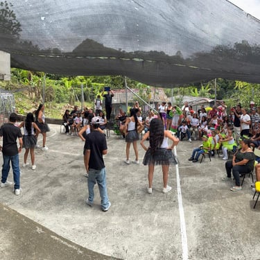 Asimismo, agradecemos con profundo cariño y reconocimiento el entusiasmo y la alegría de los padres de familia que nos acompañaron en Chinchiná. Su presencia fue fundamental para animar, apoyar y compartir junto a sus hijos este significativo momento. Su respaldo reafirma el valor de la familia en cada proceso educativo y artístico, y fortalece el tejido humano que da vida a nuestra institución.