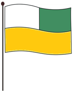 Nuestra bandera está formada por dos franjas horizontales; la superior se subdivide en otras dos con los colores: BLANCO, que significa la paz, armonía y amistad que permite la convivencia de nuestra comunidad educativa; VERDE, como símbolo de esperanza, dedicación e interacción con el medio ambiente en busca de la sabiduría para un mejor vivir. La franja inferior de color AMARILLO que se extiende a lo largo de la bandera, simboliza la prosperidad y riqueza de la región, así como la cultura del emprendimiento y la laboriosidad de nuestra gente.