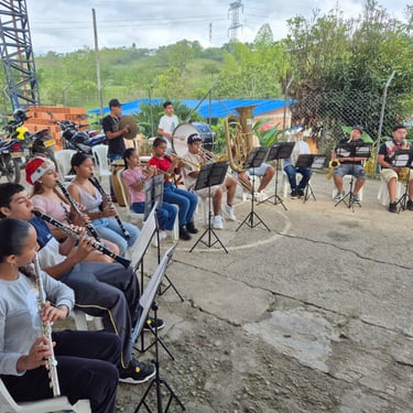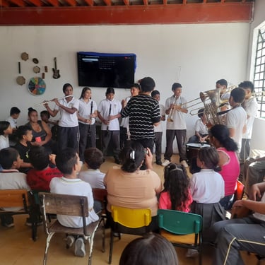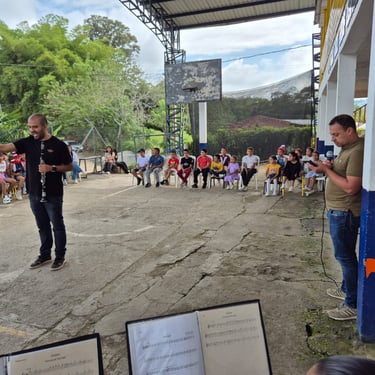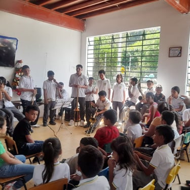 De igual manera, expresamos un especial agradecimiento al rector Norberto Ramírez por su valiosa gestión y apoyo constante; al tutor del Programa Todos a Aprender (PTA), Marcos Rubio, quien con entusiasmo se incorporó en una de las presentaciones, enriqueciendo aún más esta experiencia musical; al docente PTA de música, César Yovany Gómez, por sumarse con su conocimiento y brindar un valioso aporte al fortalecimiento de nuestra Banda Sinfónica; y a los docentes Daniel Henao y Aura María Marín, quienes acompañaron con dedicación y compromiso a nuestros estudiantes durante estos dos días, respaldando con su presencia y apoyo este proceso artístico y formativo.